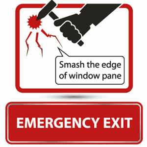 Los autocares disponen de Martillos de emergencia rompe-cristales que se encuentran cerca de las ventanas señalizadas como “salida de socorro”. Solo se deben utilizar en el caso de que no sea posible salir por las puertas.